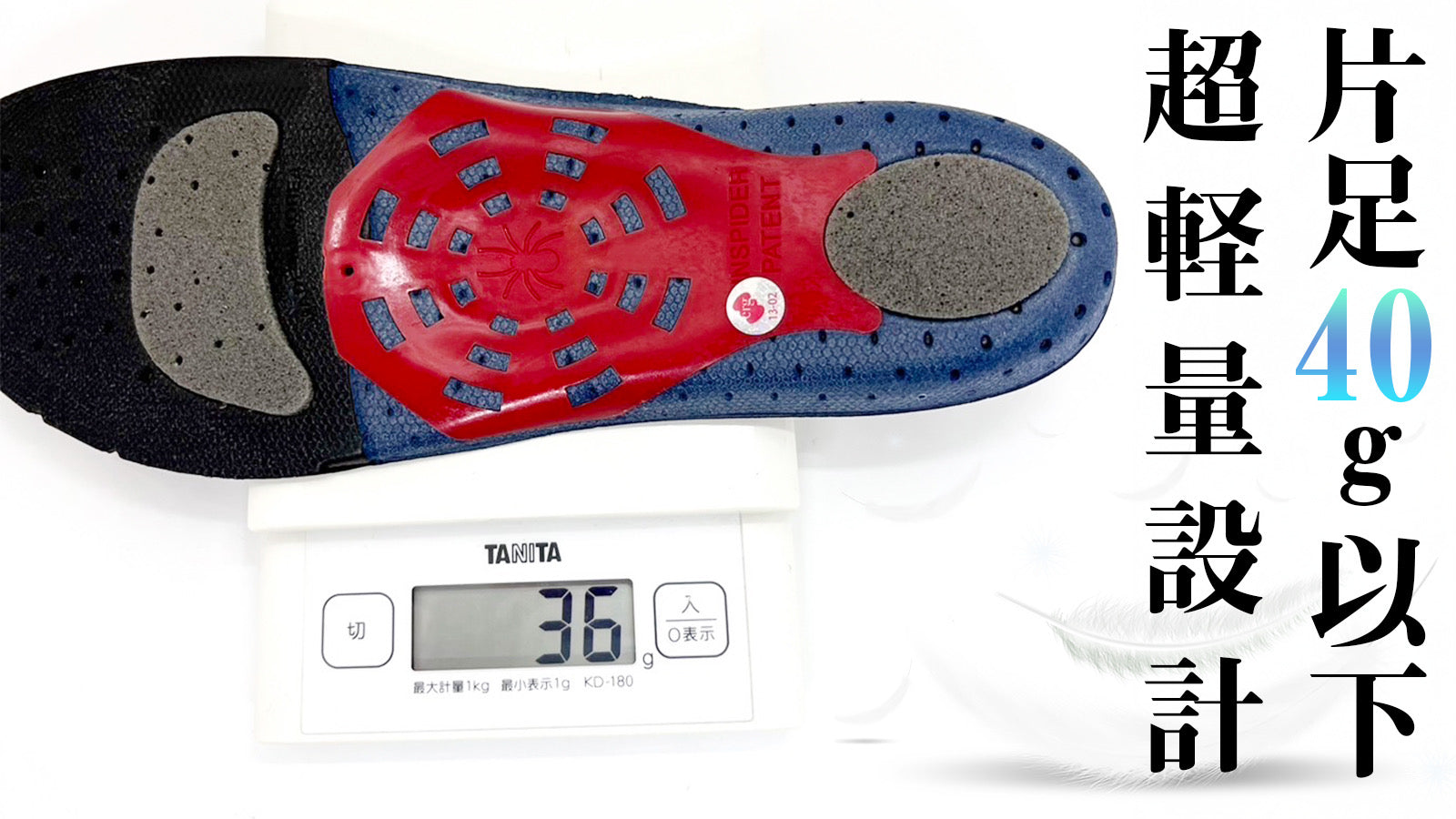 ■全ての素材が最軽量:スタビライザー付きの高機能インソールで最軽量を実現(片足40g以下)