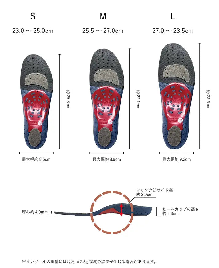 このインソールは、ビジネスシューズやカジュアルシューズ、スポーツシューズなど、さまざまな靴に対応しています。オフィスでの長時間勤務や、休日のアクティブな外出でも、その高いパフォーマンスを発揮します。